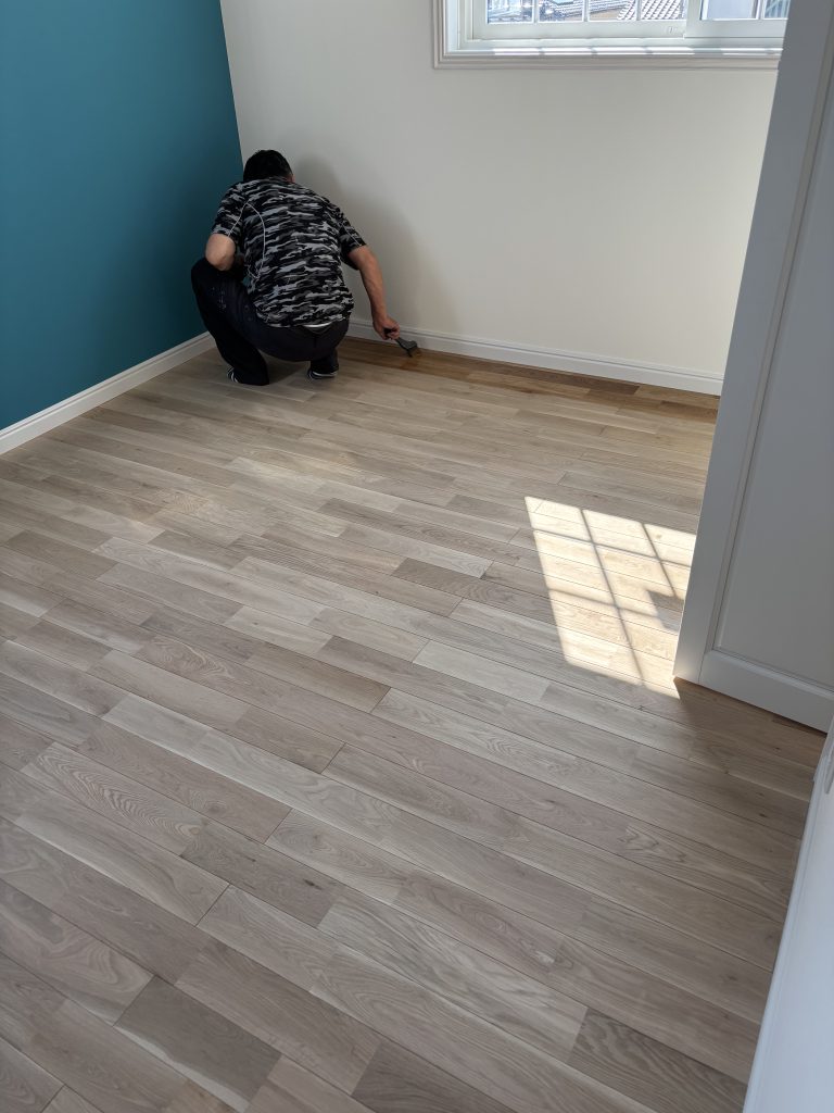 廻縁は吹き付け塗装、オーク床も塗装してもらいました